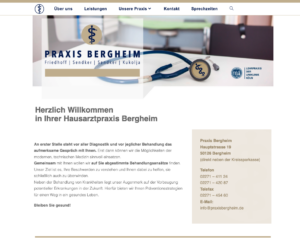 Eine etwas umfangreiche Neugestaltung eines Internetauftritts war eine Hausarztpraxis in Bergheim/Erft. Mit freundlicher Genehmigung Herrn Dr. Friedhoffs, kann ich diese hier in Ihrer noch teilweise unfertigen Version präsentieren.